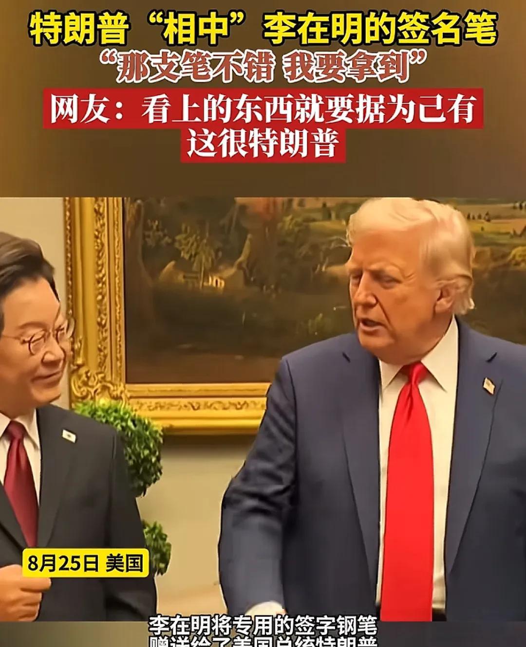 特朗普与访美的李在明会晤,签字的时候特朗普亲自给李在明搬椅子,这么殷勤果然没有好事,当李在明签完字后,把李在明的钢笔要了! 特朗普表面要的是钢笔,实际上就是服从性测试,这从李在明到达白宫一刻就开始。 中间两人交谈的时候特朗普想要获得驻韩美军的土地,邀请他一起访华,种种行为就是看他听不听话。