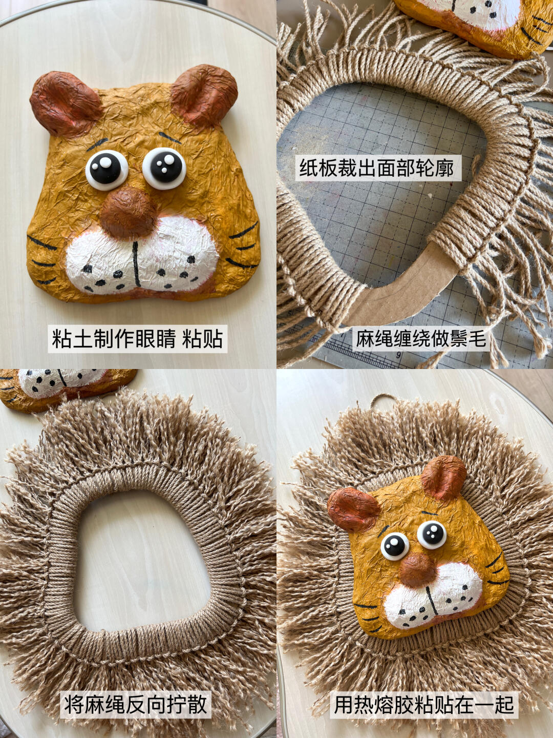 废粘土+麻绳➡️DIY儿童房狮子挂饰🦁️