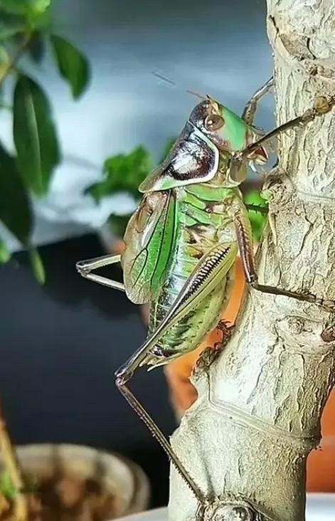 这种漂亮的昆虫,哪里还能见到吗?它的名子还能叫上来吗? 这种昆虫在八十年代之前的北方,是最常见的。秋天到了,秋高气爽,大豆田里,红薯田里,离老远就可以听到它那悠扬的、错落有致的叫声。特别是豆地里更多。一到上午,万虫齐鸣。走近地边,振耳欲聋。 我们放学了,回家的路两边,都是豆地。就情不自禁的想捉几只。先随着声音走过去,到了附近,猫腰仔细地观察,瞅到了它后,再轻轻地走到它的后面,然后再伸出两掌相对,轻轻地伸进它的两侧,然后两掌快速猛合,正好把它笼在掌心内。这是在最幸运时才能捉到它。如果被它发现或者让它听到动静,它就会一蹦跑得无影无踪。捂它时还必须连豆叶一块捂,否则它就会狠狠地咬你一口,你怕疼一松手,它会趁机逃走了。 捉到它后,用秫莛子(高粱穗下的细茎杆)扎个笼子放进里面喂养。公的叫,母的不叫,母的就难捉了。只有收割豆子时,它无藏身之处了,才可以捉到。长长的尾巴,大大的肚子。捉到了用一根狗尾巴草穿起来,能捉一大串。到了家,锅里放少许油,放进锅里煎炒,再放盐少许,炒黄炒焦,极好吃了。如果只捉到一两只,也可在锅底炉堂里用火烤焦,也挺香的。 现在这种昆虫不见了,据说是农田使农药,被药绝种了。不知道哪里还有这种东西。