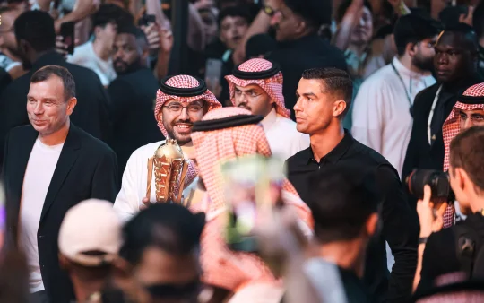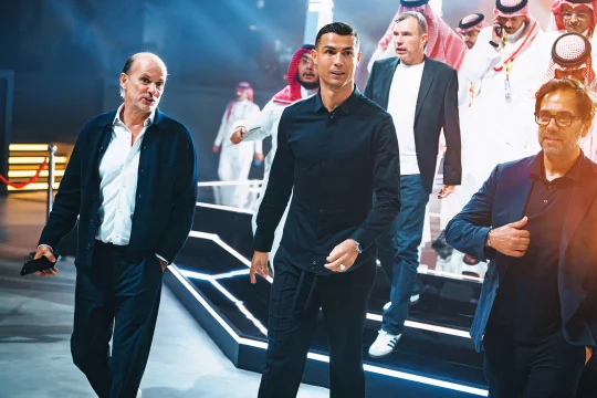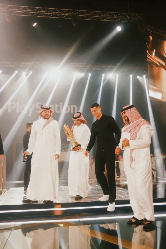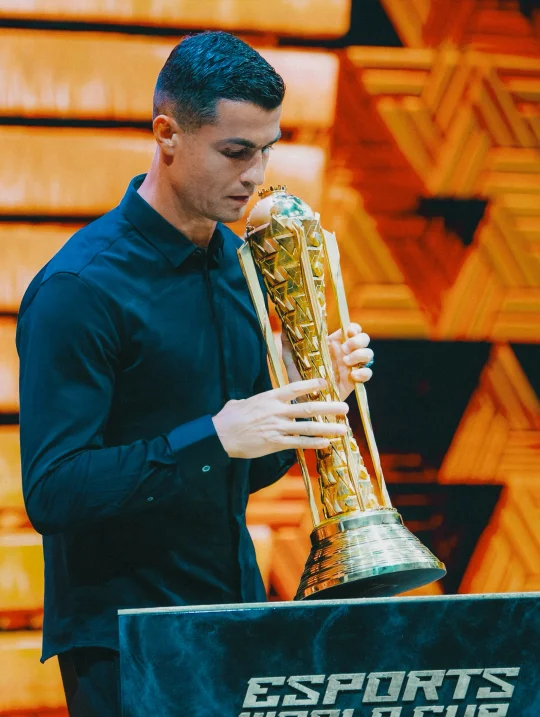 ✦ 在EWC电竞世界杯闭幕式的颁奖仪式上,C罗展示了本届电竞世界杯的冠军奖杯,并向夺冠战队Falcons颁奖。