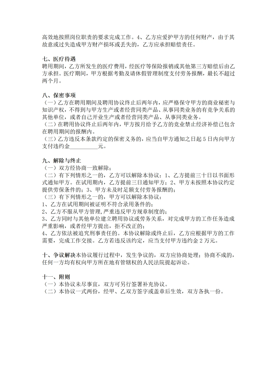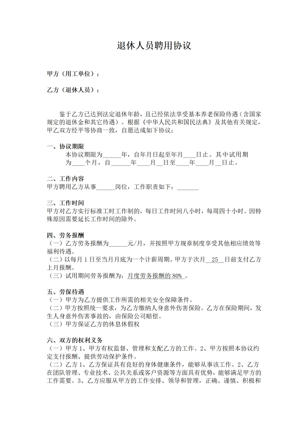 退休返聘人员协议模板