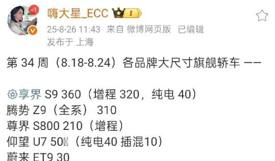 昨天,余承东于发布会上才宣布尊界S800上市87天,累计大定达1.2万,上市还不到三个月,就卖了友商一年的销量。
