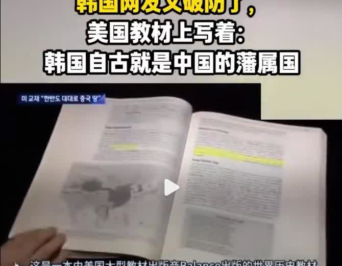 韩国人的玻璃心又碎了[捂脸]…… 他们很惊讶的发现,原来在美国的教科书中,韩国自古以来就是中国的藩属国? 注意看下面这张图。 一向自负、喜欢“发明历史”的韩国人,在他们的认知中, 韩国在历史上可是个“独立自主”的“强大国家”, 甚至吹嘘自己有5000年的历史, 还把中国的历史人物,都说成是他们的[捂脸] 然而,这套说辞在全世界除韩国以外的任何地方,都没什么市场。 这不,老美的教科书直接打脸了…… 最近,他们发现,美国的大型教材出版商Balance,发行的世界历史教材中, 明确强调了,历史上的朝鲜半岛,对中国都是藩属关系。 “韩国是一个受到中国庇护的国家清朝时期,整个朝鲜半岛被视为清朝版图” …… 这句话是几乎完全戳中了韩国人的痛点,连语气都加快了几分[捂脸] 老实说,老美的历史课本,这段话的描述还真是大差不差的。 无论是唐朝与新罗、元朝与高丽、明朝与朝鲜,那块地跟咱们中国这边,基本都是稳定的藩属朝贡关系。 甚至在汉朝至三国时期,都有部分地区接受了汉朝的册封。 这就是有据可查的真实历史,只不过韩国人一直不愿意相信罢了…… 不过,他们不相信也没啥用, 老美都这么说了, 他们总不敢真的让老美的大使,跪到太极旗下吧[捂脸]