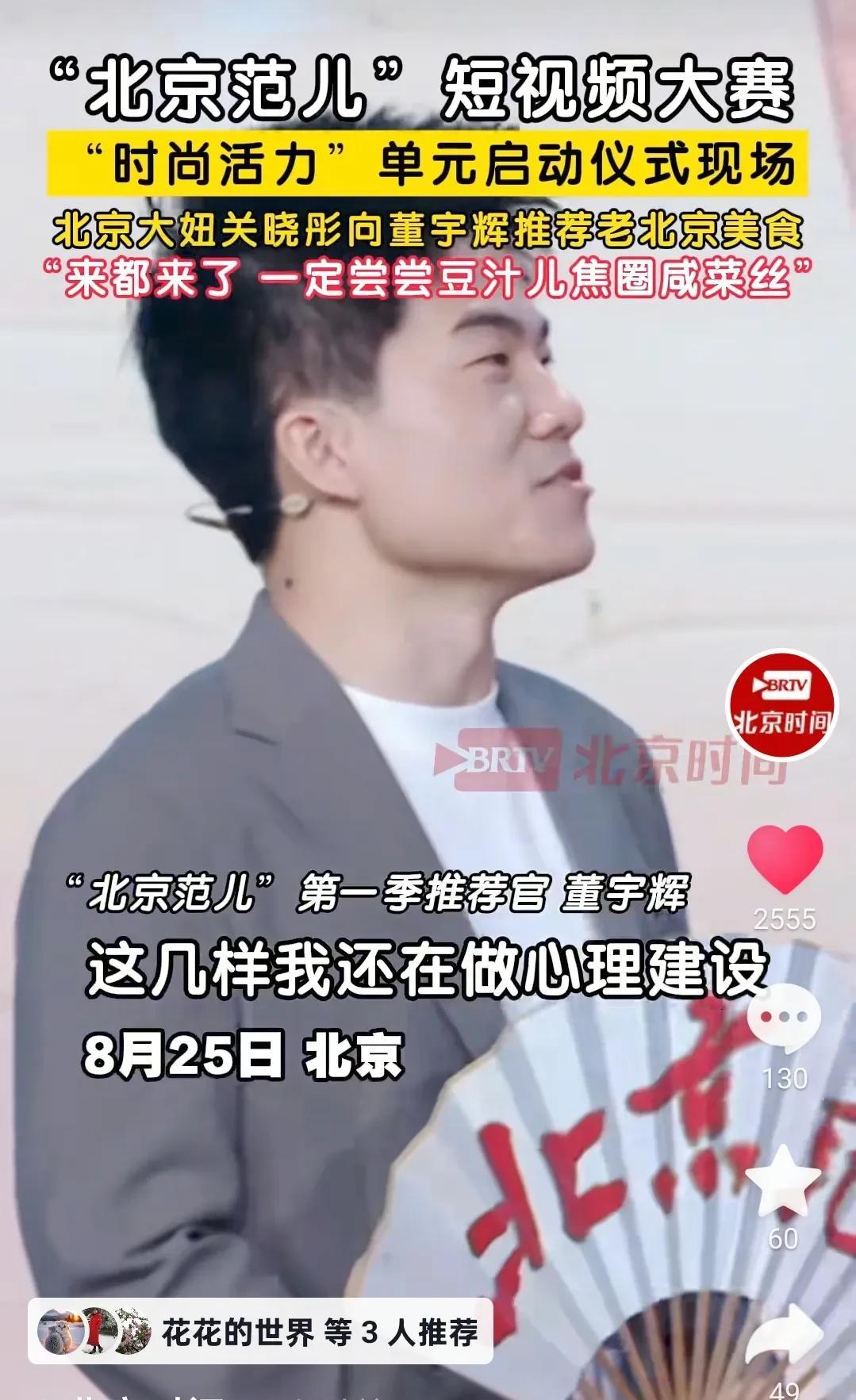 宇辉也有玻璃心的时候,昨晚宇辉就心碎了,原来宇辉昨天参加“北京范儿”短视频大赛第二季的启动仪式,和关晓彤交接,宇辉是第一季推荐官,关晓彤是第二季推荐官,关晓彤昨天给宇辉推荐北京豆汁,宇辉说我还在做心理建设,宇辉最怕的两种食物,豆汁和螺蛳粉。宇辉闻到就受不了,更别提吃了。 这个不是重点,重点是小朋友们见到宇辉都叫叔叔,宇辉破防了,我也是个宝宝呢,怎么就是叔叔了? “北京范儿”结束回来,宇辉就进了兰知春序,和潇潇聊了近半个小时,说他今天要出差,还说被叫叔叔难受香菇,潇潇给了宇辉6张面膜,宇辉说海之蓝他买了没啥用,潇潇说海之蓝能外用吗?彪哥还是分不清海之蓝,海蓝之谜,海澜之家,宇辉也知道用高档化妆品了,把脸好好保养保养,还没翠花呢,你可是靠颜值吃饭。 兰知春序今晚6点《游知万物》鹏鹏带大家云游铁路博物馆。这些都是宇辉为大家精心准备的,大家有空跟着镜头了解一下铁路发展史,增长知识。