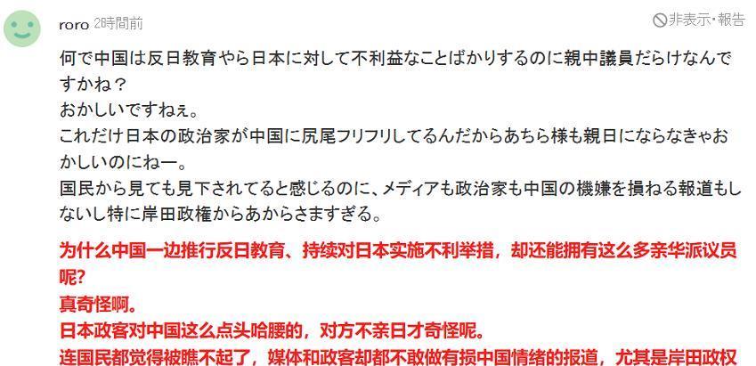 在日本对华罪恶历史没有清算之前,中国人对日本的憎恨情绪是合理的,应该被理解。谈中日友好也是令人别扭的,不客观的。所以我对中日关系现状是满意的,彼此仇视互不信任,这有利于下一步工作的开展。