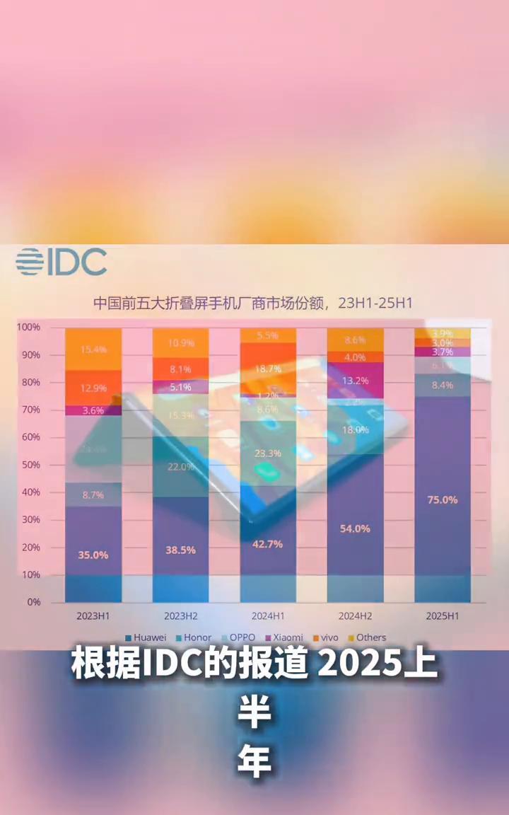华为折叠屏手机果然是没有"天敌"。 根据IDC的报道,2025上半年中国折叠屏手机出货量达到498万台,同比增长12.6%。其中华为折叠屏手机出货量3735万台,占比75%。很明显在折叠屏手机方面华为一路领先,而且已经领先很久了,几乎没有天敌。