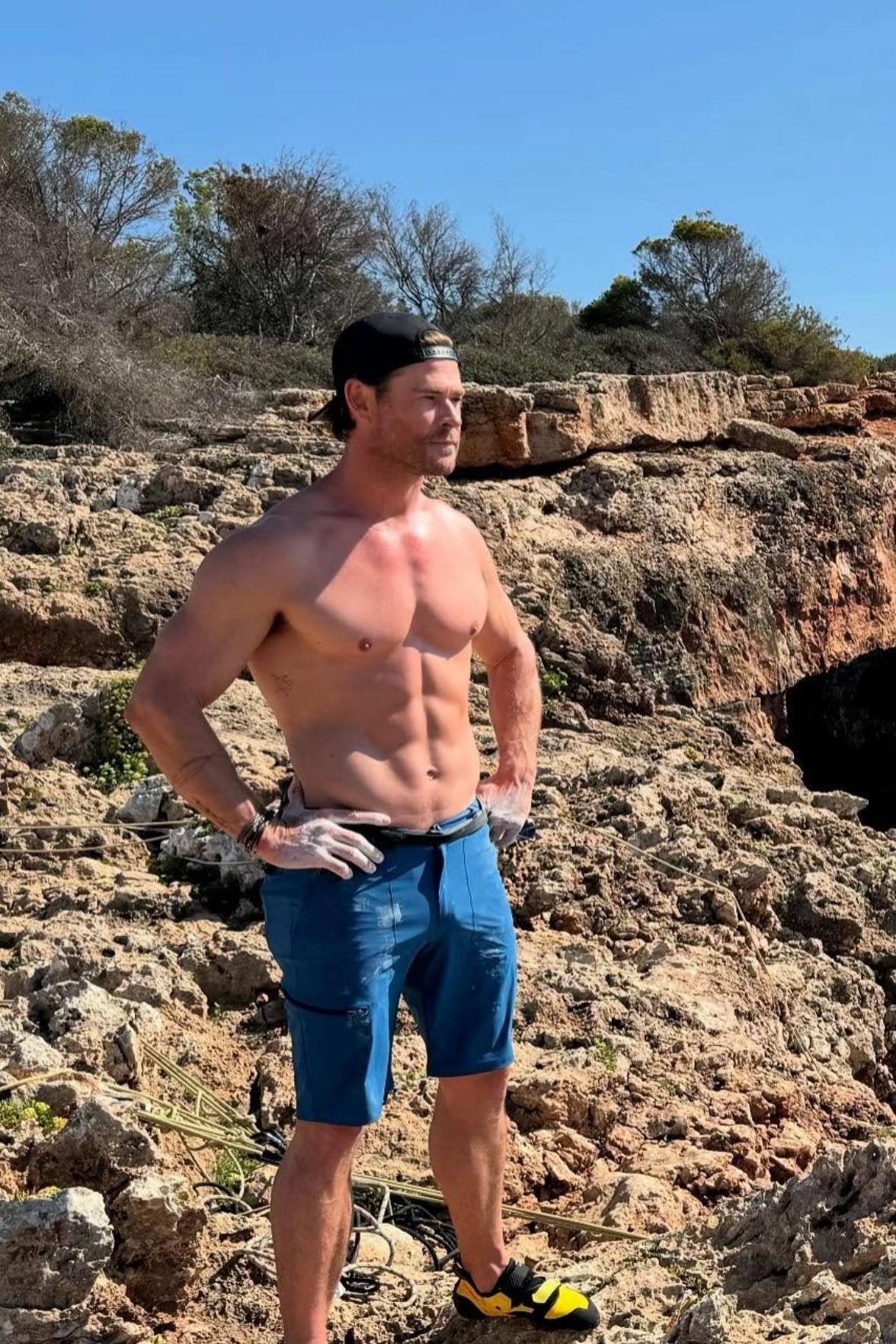 锤哥克里斯·海姆斯沃斯攀岩照,直接被帅到失语! 赤裸上身挂岩壁上,肌肉线条跟岩石
