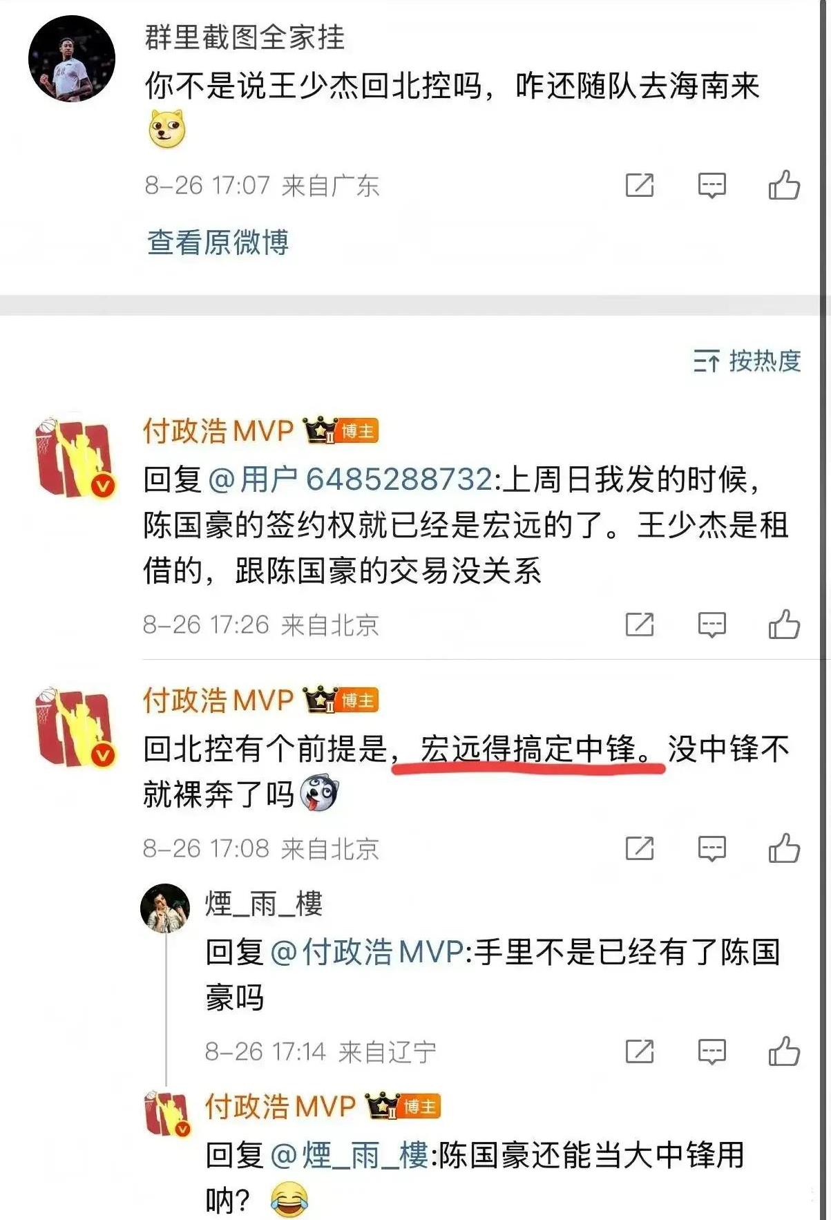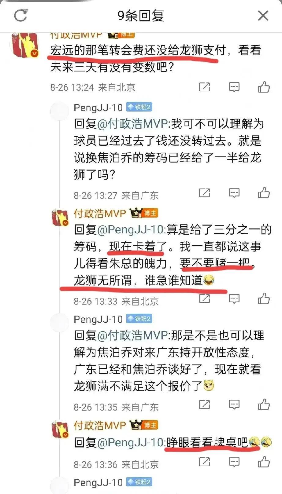 广东宏远仍还在谈判桌上!媒体人透露:徐昕不好卖,正在给某家国企俱乐部推荐呢。cba有国企背景俱乐部,目前还缺中锋的就那几家,北控、北汽、青岛、山西等!这位记者喜欢刨根问底,之前报道辽宁队质押股权也是这样,一定要弄的水落石出,媒体人付政浩还表达对宏远男篮资金来源密切关注,并透露,焦泊乔目前还是属于龙狮俱乐部,广东宏远并没有付全款,并暗示朱芳雨要抓紧时间,未来三天是否有变数得看魄力了。