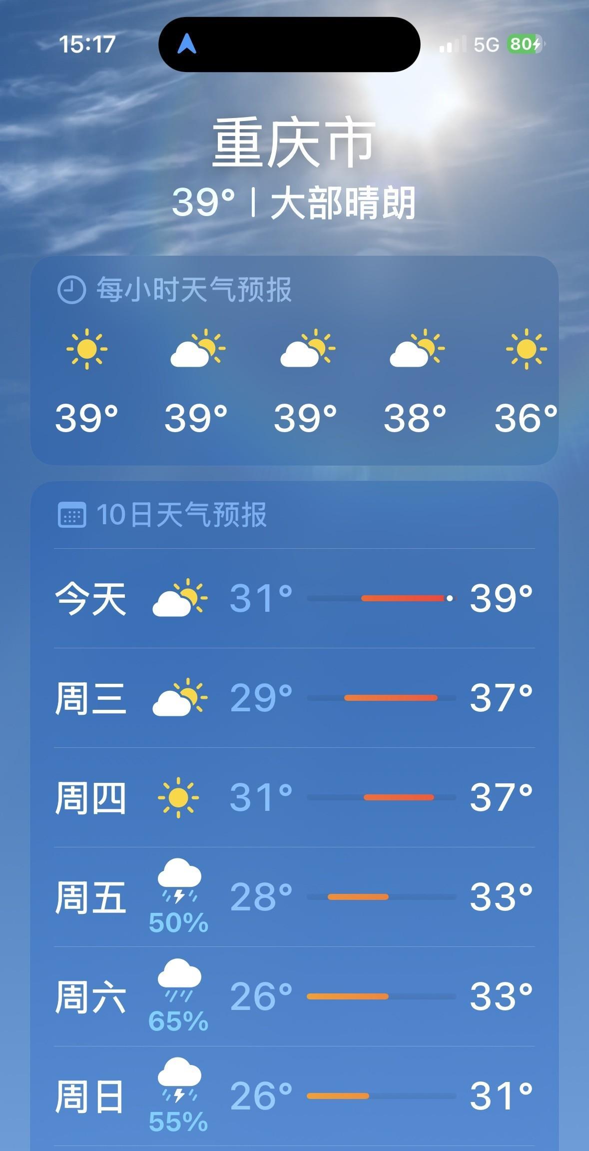 这可能是重庆秋老虎最后的疯狂!8月26日和27日,重庆主城区迎来8月最后两天的40度高温,随后,重庆可能大降温!8月29日,星期五,重庆降雨降温!从此以后,8月再也不会有40°高温啦! 可喜可贺!40度高温秋老虎,即将滚蛋!多么希望西伯利亚的冷空气,彻底冻死重庆秋老虎吧! 哎,最近,重庆与成都,冰火两重天啊!重庆人多么羡慕成都啊!成都气温低迷,充满了无限魅力啊! 重庆主城区的小伙伴们,今天下午,赶紧逃离重庆主城区吧,去南川金佛山178环线露营玩水吧! #光线摄影世界曾兰谈天说地# #头号创作者激励计划#