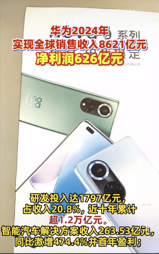 华为去年进账8621亿,手机卖疯了,汽车部件更夸张,出货量翻了近7倍。终端业务一口气冲上3390亿,车BU从无到有赚了263亿,第一次盈利就震得人耳朵嗡嗡响。