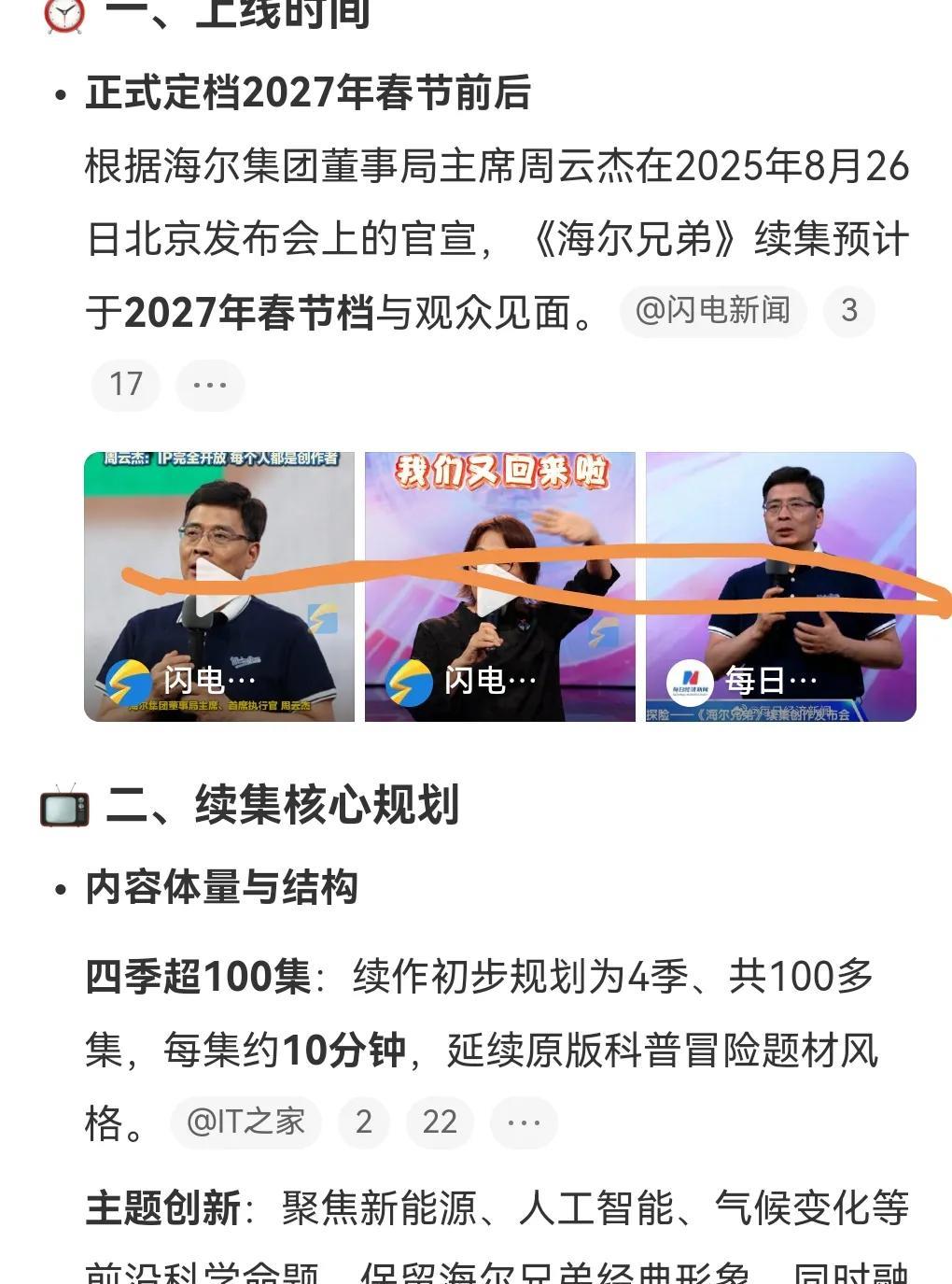 这真的是童年的记忆啊。 想不到在有生之年还能看到《海尔兄弟》续集。 将会在2027年春节档上映。 看来有钱就是好办事啊,出个动画片也是非常容易的事情。 《海尔兄弟》这个动画片很有教育意义。#海尔兄弟续集上线时间确定#