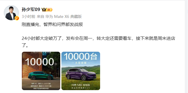 今天晚上,很多人都在等,自从余承东昨天这两个新车把价格发出来后,已经整整过去24小时了,这两个车的成绩到底怎么样?