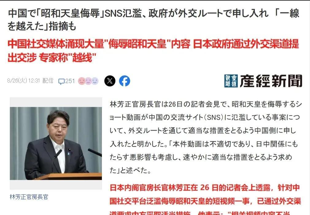 日本官防长官林芳正要求中国约束国民停止侮辱天皇并道谦 据《朝日新闻》8月26日消息,日前日本内阁官防长官林芳正在记者招待会上称,现在大量中国网民引用昭和天皇的形象和表情包在网上大量传播,是对日本人民的不尊重,中方因对此类行为进行约束并向日本道谦。 一个下令攻击中国的决策者,战后80年还被日本政府拿出来说事。说明日本民众对于侵华问题上的态度。因此广大民众应该怎么做呢?