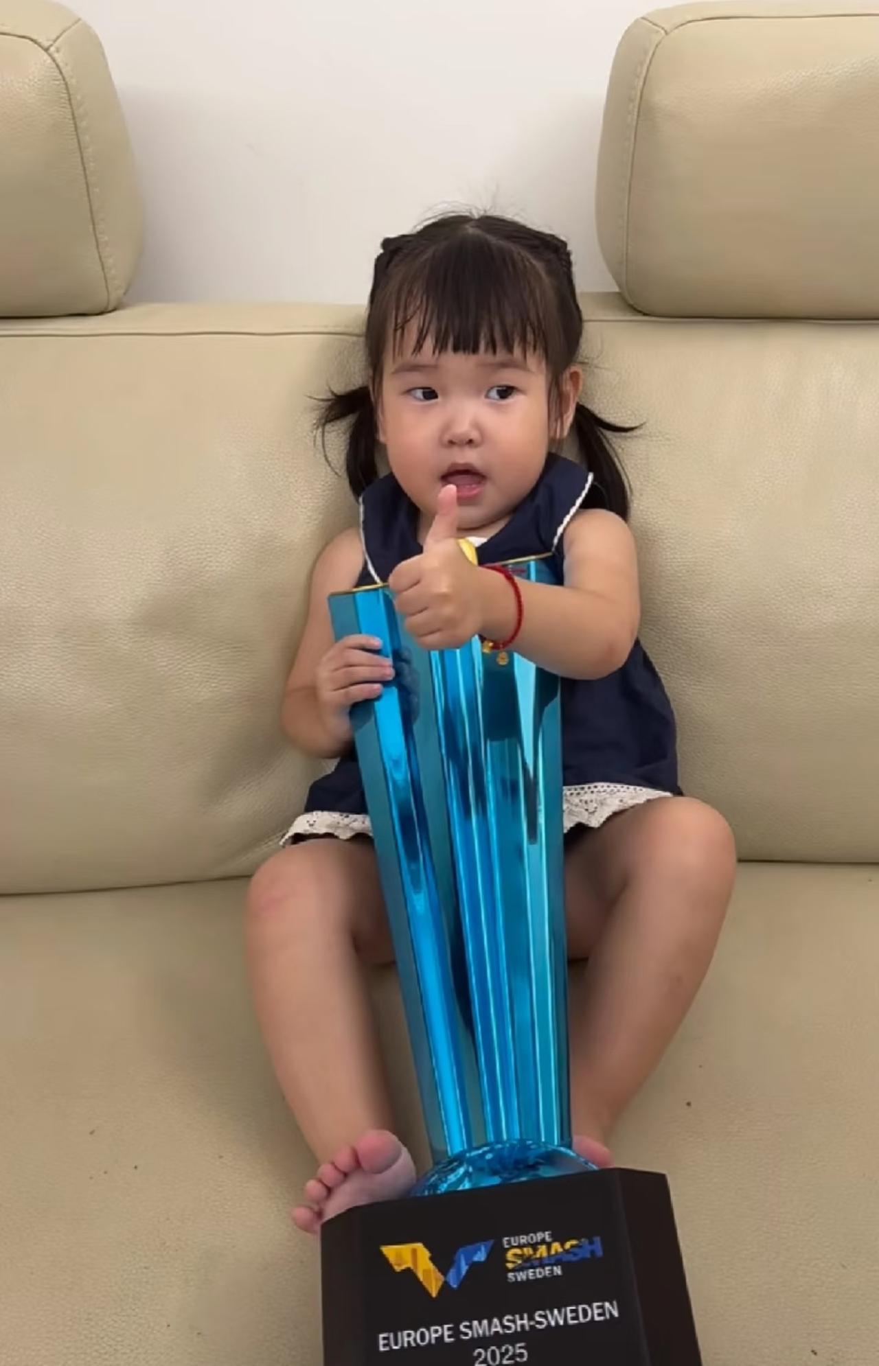 黄镇廷更新:恭喜楹楹又有大玩具啦 8月27日,黄镇廷发文: 瑞典大满贯, 这么大