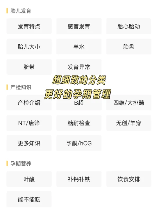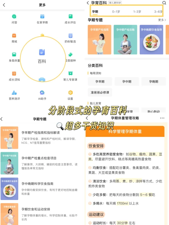 全面从怀孕开始后,每个夜晚空闲时我都会在里面学习一段时间的孕育知识,多亏了它,能够大大缓解我孕期焦虑。从“孕期营养”“孕期不适”到“分娩准备”“妈妈产后”,分类特别细,对啥都不懂的准妈妈,就特别友好!