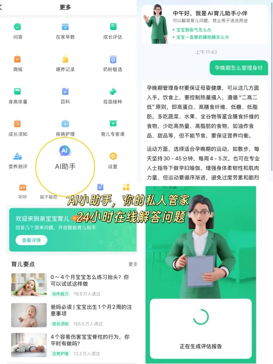 在线解答问题。孕期头痛,便秘,失眠?直接输入问题,AI智能孕育助手秒回答专业解答,内容全是妇产科、营养专家团队审核过的,特别靠谱!