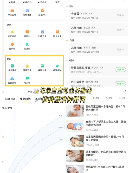 生完秒变宝宝成长档案库!拍嗝视频,母乳记录,疫苗提醒生长记录一键对接。