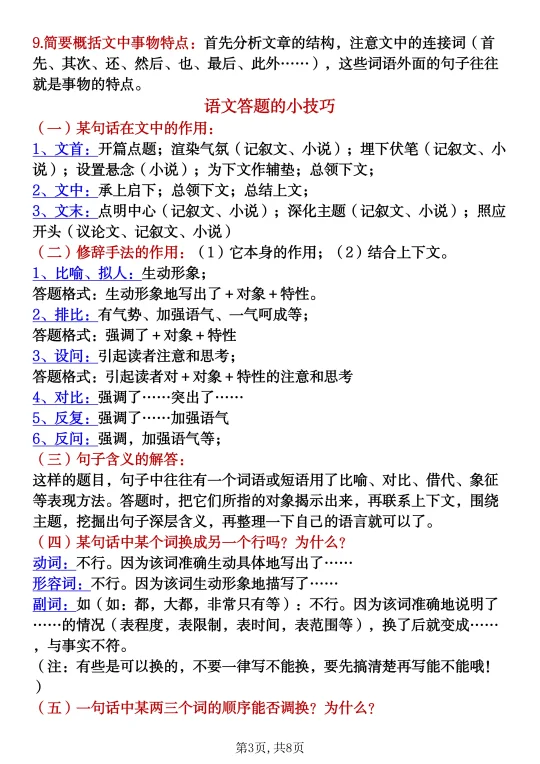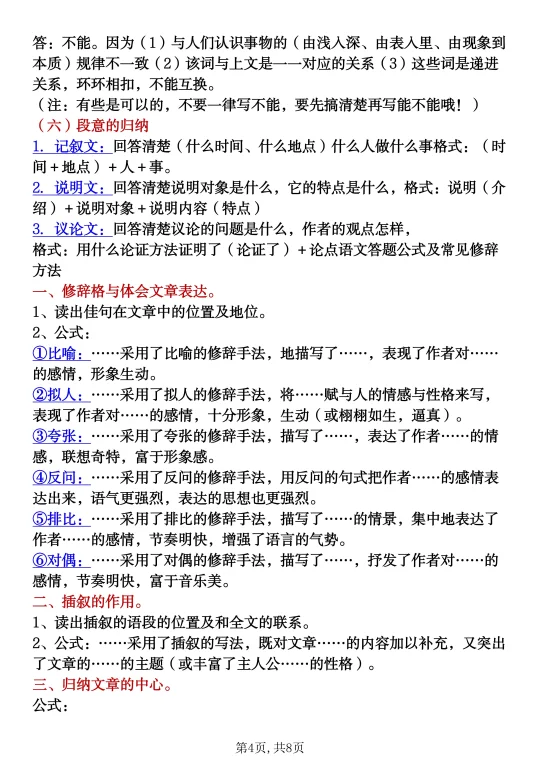 家长收藏孩子受益 辣妈育儿经 七年级 知识点总结 六升七 语文新学期 语文阅读理解准初一暑假预习