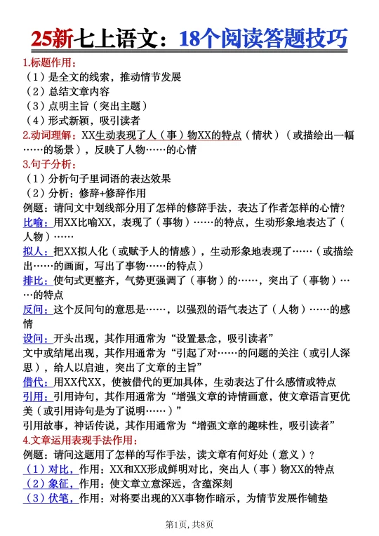 新七上语文真恶心,反复就考这18个问题!