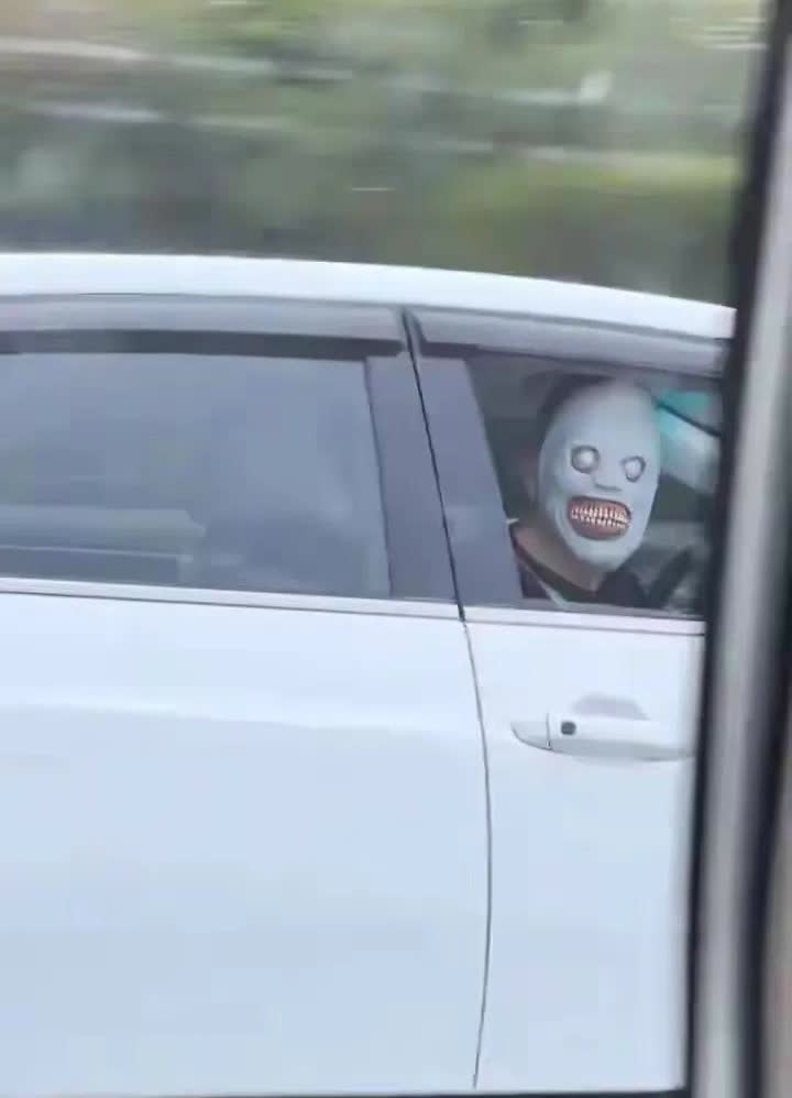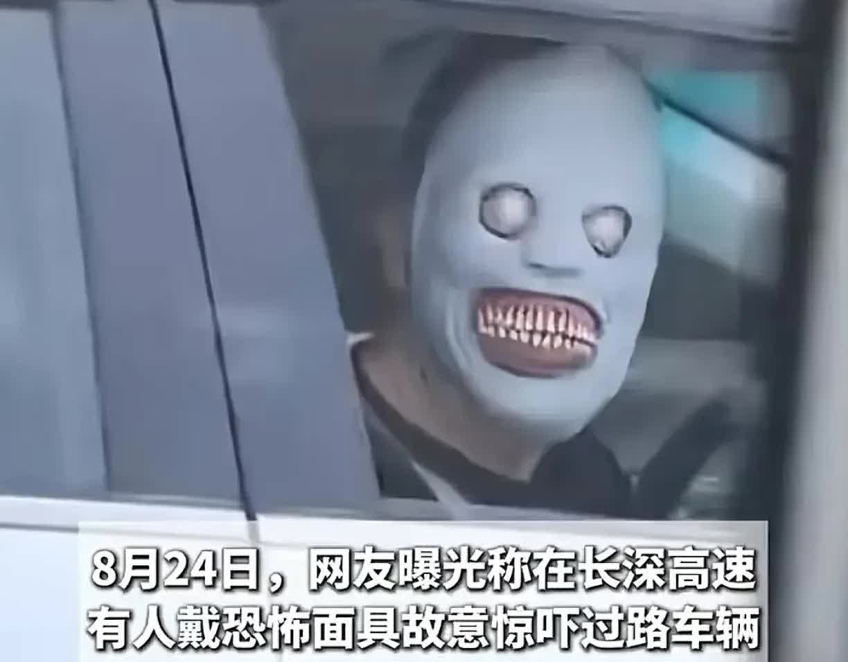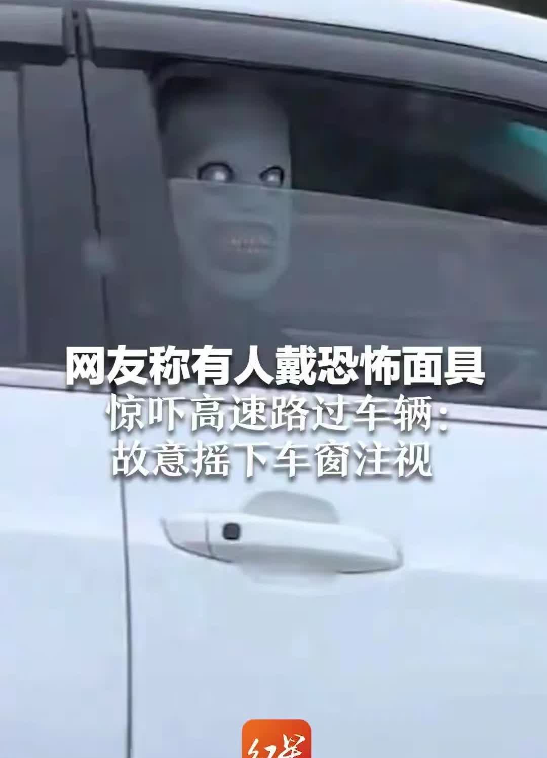 高速上演惊魂一幕!网友惊呼:太吓人了!交警:严查到底! 近日,长深高速杭州路段,一辆沪A牌照的小车上,惊现一戴着恐怖面具的男子。 该男子见路过车辆,故意将车窗摇下来,转头注视着对方。这是有多变态才会这么干?闲得慌?还是精神病? 大半夜的,这是要吓死谁呢?目击者中有名女性,她表示惊魂未定,这估计成了她的噩梦。 试想如果遇到一个新手司机,大晚上看到这恐怖面具男,极容易惊慌失措,刹车油门一顿乱踩,加上高速,大家车速都很快,很可能造成严重的交通事故。 幸亏有人拍下了这个场景,现在警方已经介入。网友纷纷表示:这种人就该按危害公共安全罪入刑。你们怎么看呢?