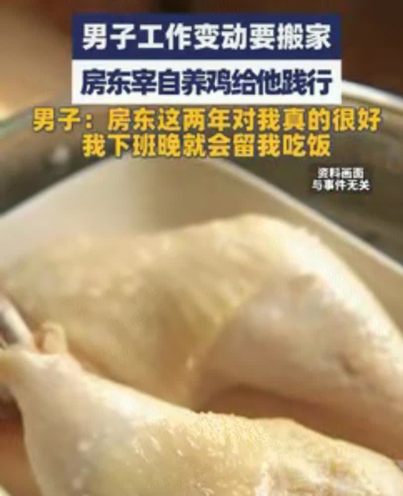“都是实在人!”四川成都这事儿, 看了真暖——男子要搬家退租, 房东没算鸡毛蒜皮的账,反倒把自家养的土鸡宰了炖上,就当给租客践行。网友说得在理:有的房东提灯定损挑刺儿,有的房东杀鸡送客暖人心。 男子住了两年,房租水电从没拖过,房子打理得一尘不染;房东呢,见他下班晚了总留饭,这次离别更是笑着忙前忙后。哪是简单的租客和房东?分明是处出了家人似的情分。 现在租房哪容易?要么怕房东涨租挑错,要么怕租客糟践房子。可这俩把“各取所需”过成了“彼此体谅”——你珍惜我的房子,我心疼你的漂泊。说到底,人和人的好都是相互的,你给一分实在,我还一分热乎。 你租房时遇见过这样暖心的人不?要是你是房东或租客,会怎么处这关系呀?
