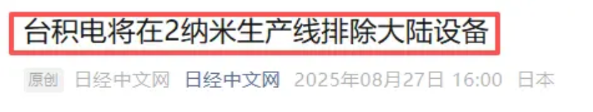 中国半导体到底发展到了什么程度,看看台积电最新的操作就明白了!日媒最新爆料,台积电已经决定,将在今年量产的2nm芯片生产线上,把所有的中国厂商设备给拆了! 说白了,现在中国虽然没办法生产出,像荷兰ASML那样高端的芯片光刻机,但国内的一些企业,已经在部分领域,做到了跟进全球顶尖水平的产品,这些设备也不例外。 不过这样的发展速度,并没有得到台积电这头“行业巨兽”的支持,反倒是在最先进的芯片制程生产线上,把中国的厂家给排除在外,并且台积电还给出自己的解释,这可以避免生产受到地缘政治影响的风险。 在我看来,如今全球能生产2nm芯片的厂家,不止台积电一家,三星最新款手机,将会搭载全球首发的2nm制程芯片,刚好李在明想跟咱们缓和关系,这正好是个交投名状的机会。 对此大家怎么看?