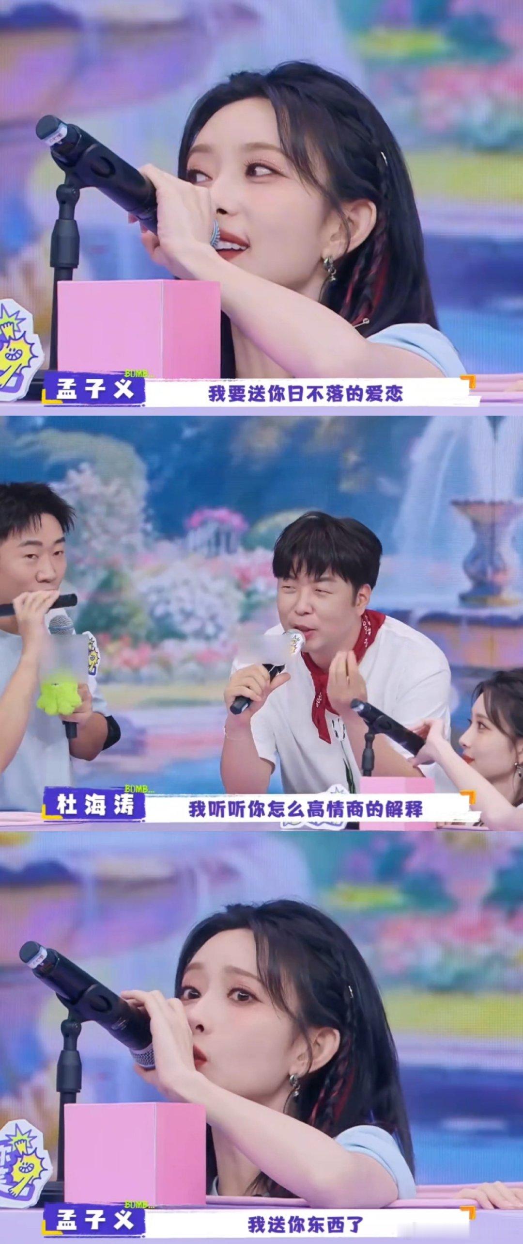 孟子义一张嘴全是高情商 谁被孟子义唱歌的高情商戳到了!从《我送你东西了》到《强制爱》,不管“梦到”哪首歌都敢唱,还能把小意外变成名场面,太会了!