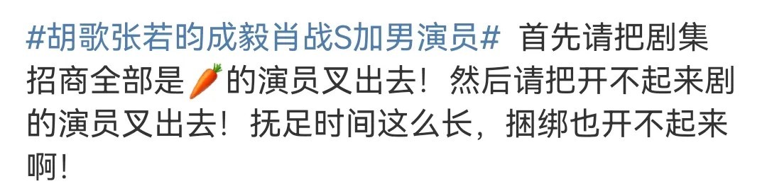 萝卜剧叉出去,成毅PASS 剧开不起来的叉出去,张若昀PASS 就剩下肖战和胡歌了。