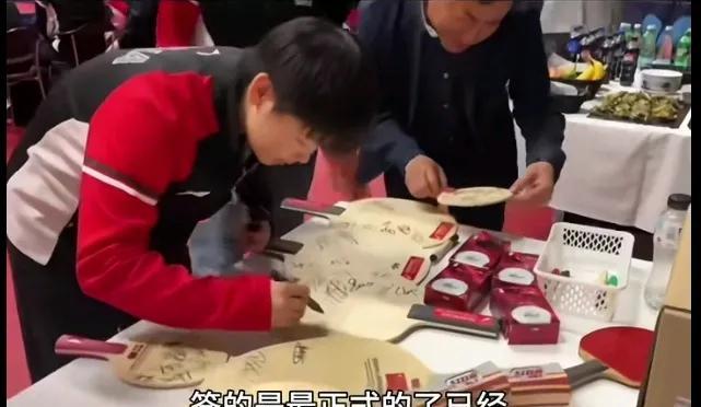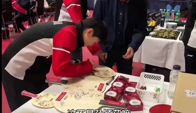 莎莎:你俩当面蛐蛐小莎礼貌吗?声音还这么大!哈哈!莎莎在活动现场的球拍上签名,听