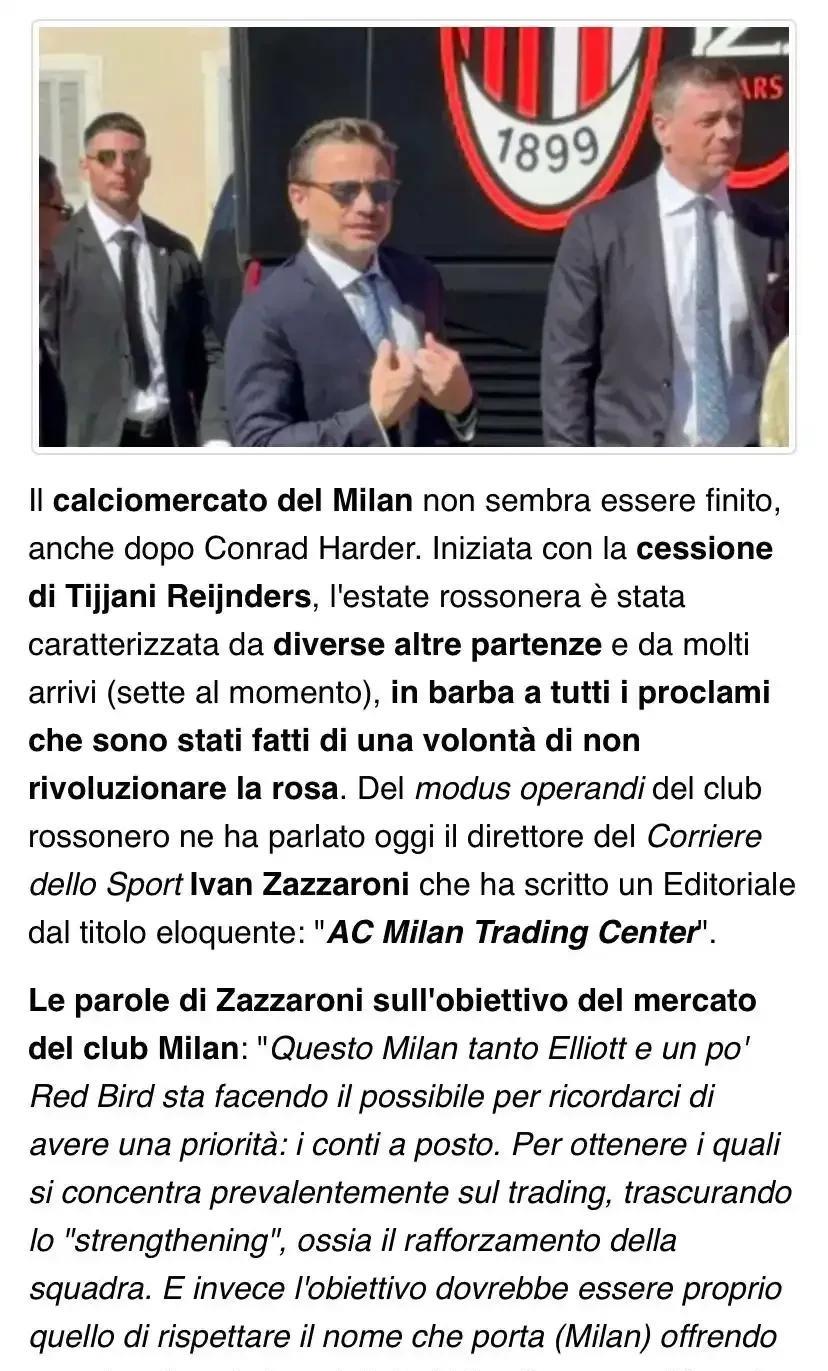 米兰俱乐部的运营理念为财务健康,在财务健康的基础上才是其他!米兰的转会市场似乎尚