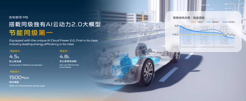 吉利银河M9内饰亮相了,跟我们昨天预测的一样,参考之前的900就OK,所以极氪9X的内饰也八九不离十。当然三款车的架构,定位是各不相同的。银河M9是GEA架构。900是SPA EVO,极氪9X是SEA。 银河M9:长5205,宽1999,高1800 ,三排六座。贯穿灯是380颗LED,首秀也透露了配置,主驾最高16点按摩、带主动侧翼支撑,一二排按摩、通风加热、四向腰托、副驾女王座。全车座配石墨烯理疗加热。底盘:雷神EM-P超级电混,轮边电机,双腔闭式空悬,综合续航1500多公里,4秒5加速,硬菜不少,辅助驾驶是千里浩瀚H5,无图NOA。 今年,整个吉利集团的大车特别多,除了这三款外,今年底前还会有8X亮相。