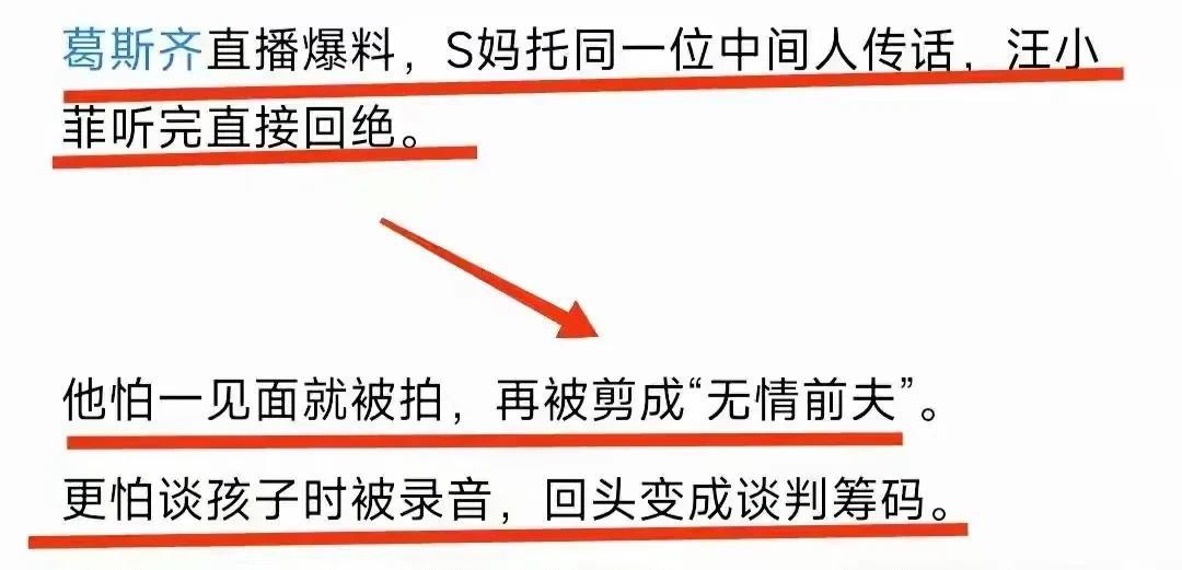 葛思齐直播的时候透露,S妈不发声的这段时间也没打算收手,还在通过中间人想约见汪小