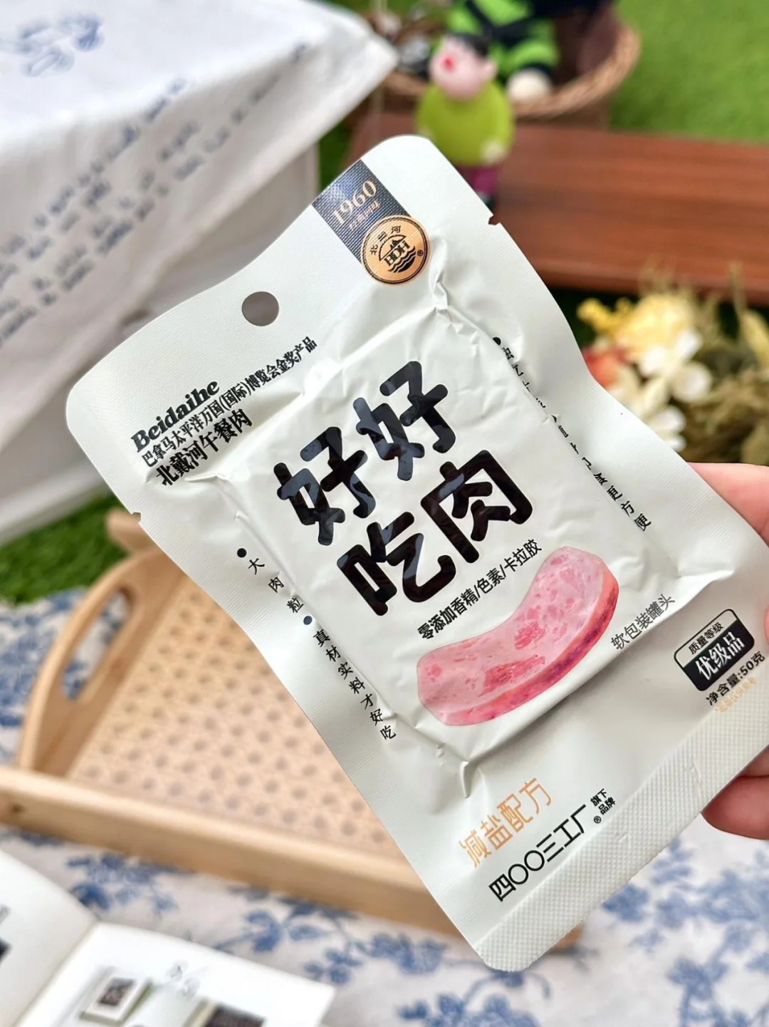 谁懂啊!! 终于不用提前一晚准备复杂餐食了 塞几包北戴河好好吃肉午餐肉 就出门 独立包装轻便又不占空间 随手扔进野餐篮🧺 说走就走~ 配料表干干净净🌱 0添加香精 色素 卡拉胶 减盐配方吃起来没负担 空口吃也不齁咸! 肉质紧实越嚼越香 搭配水果和气泡水🥂清爽不腻 闺蜜直接抢着撕开吃hhh 不用洗碗不用收拾 太适合我这种懒人了吧! 重点是不用冷藏❗不怕变质❗ 已经列入我的「春夏野餐必带清单」🧾 轻装上阵也能吃出幸福感, 这才是野餐的正确打开方式呀~