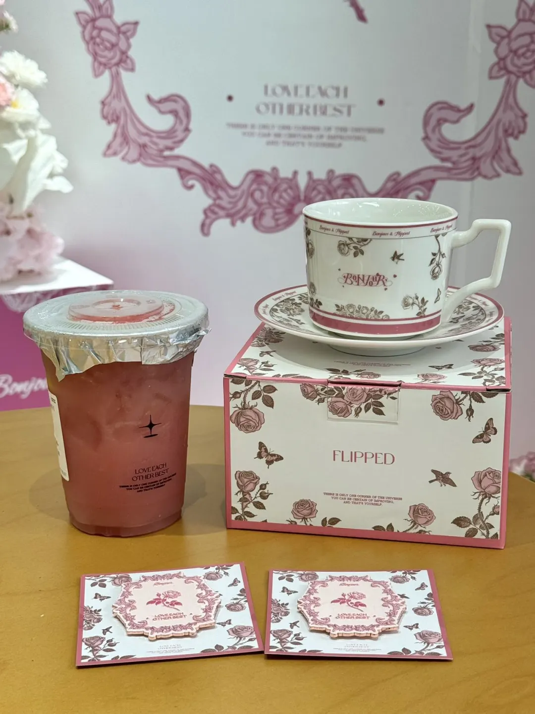 这才是情人节真正要喝的! 蓬巴杜粉莓奶huhu,颜值好高 Flipped·怦然心动美到失语 甜梦花园冰箱贴敲精致 拿在手里质感很好,设计感十足 还有漂亮杯碟,少女心狠狠拿捏了…