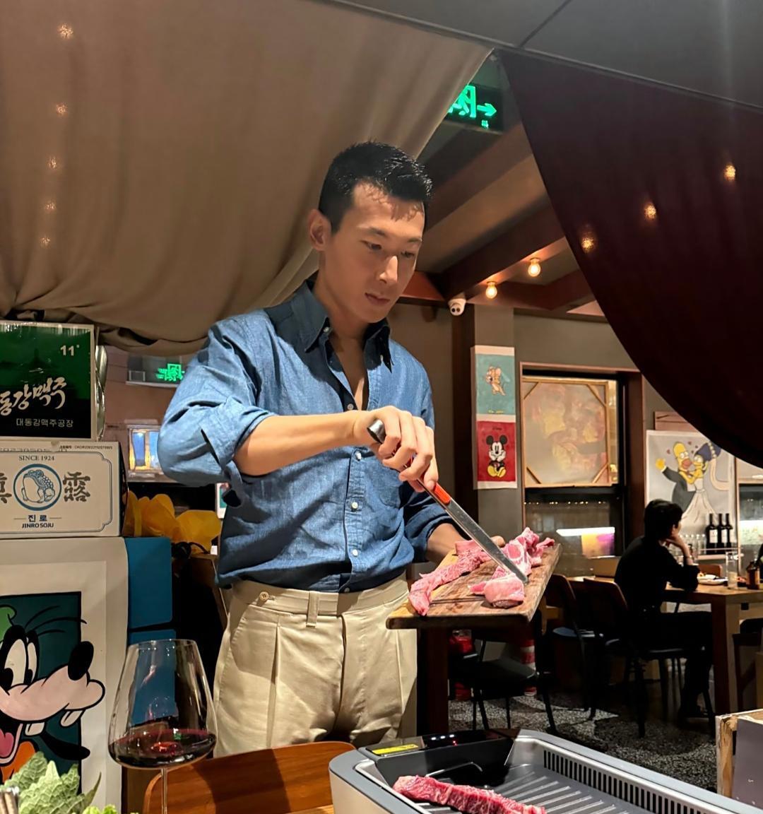 朱珠和老公带着女儿在北京餐厅吃烤肉,她的老公挺帅的,身材也好,女儿长得像爸爸,脸