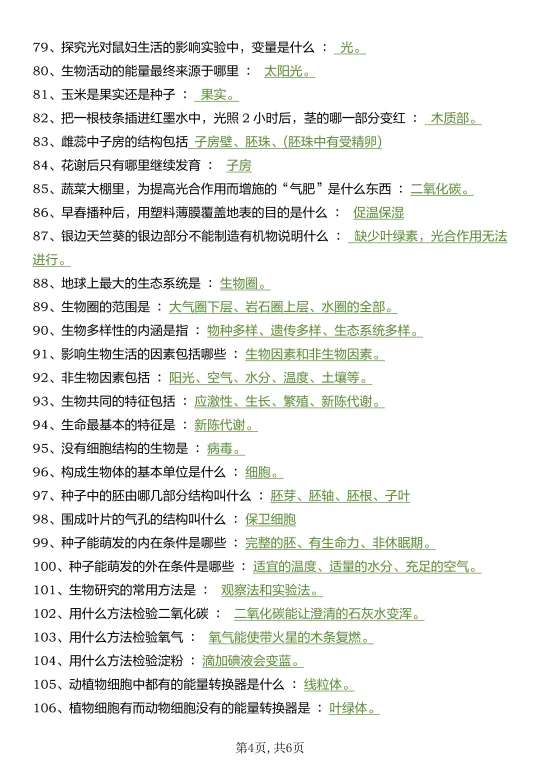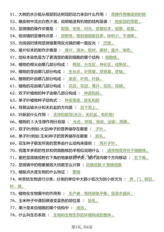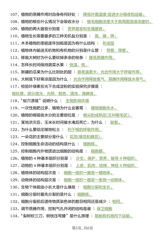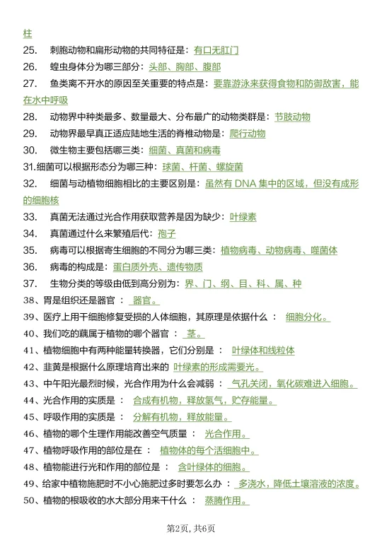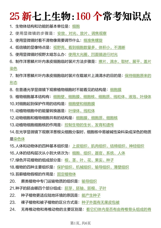 25新七上生物真恶心,反复就考这160个问题