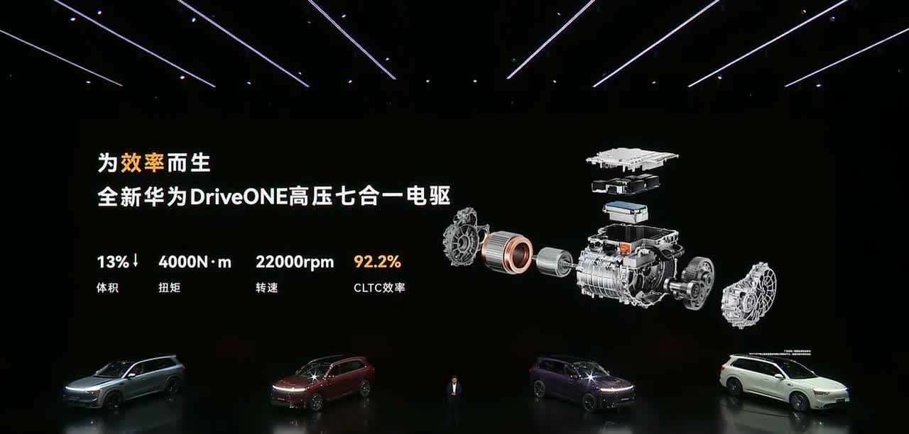 华为DriveONE到底是啥?今天聊聊。 1. 咱从产品入手,以鸿蒙智行最近三款新车为例:智界R7、智界新S7和问界M8纯电三款车搭载的都是华为DriveONE电机。 2. 华为DriveONE的核心是高压七合一电机。在部件融合架构上,实现了OBC、PDU、DCDC、DCAC、MCU、减速器、电机七大部件深度融合。 3. 相比上一代三合一电机体积降低13%,使得整车拥有更大的乘坐和储物空间。 4. 该电机基于800V高压碳化硅平台打造,CLTC综合效率达到了92.2%,最高转速高至22000rpm,峰值扭矩可达4000N·m,为M8纯电长续航版带来高达705km的续航里程,并且续航达成率超80%。 5. 在安全层面,支持L3级别的冗余供电,车辆低压电源失效,动力依然不丢失,为未来高阶辅助驾驶功能的实现提供底层安全保障。一体化隔音壳体、阻尼盖板降低辐射噪声、大重合度传动齿轮、共振智能调控等技术,让M8纯电版拥有更加安静的车内空间;动态自适应扭矩控制技术,有效提升车辆刹停舒适度 华为DriveONE已经与尊界、问界、享界、智界、阿维塔、广汽丰田等众多车企品牌展开深度合作,为超过50款新能源车型提供纯电、增程场景的动力域解决方案。据盖世汽车统计,2025年上半年,华为DriveONE电驱动产品装机量居行业第二,在独立供应商中位列第一。【来自懂车帝车友圈】