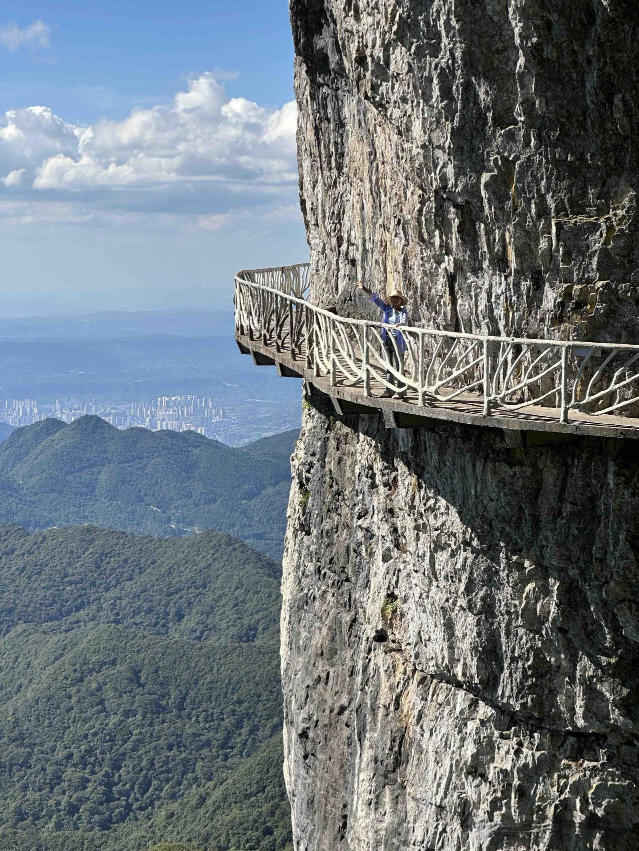 令人惊讶,海拔高度只有不到700米的重庆金佛山西坡景区大门口,凉风习习,大树下很清凉,可是今天重庆主城区及三峡库区最高气温40度甚至41度,超级热啊! 嗯,天星小镇的大树下的小溪里,很多小孩子在抓小鱼小虾小螃蟹,家长们坐在岸边,尽享清凉! 哎哟!金佛山山顶的古佛洞,今天气温只有9.5度左右,和重庆主城区阴冷潮湿的冬天一样的寒冷! 今天,金佛山山顶,最好穿外套! 穿着长裤长袖的小孩儿们,在金佛山山顶的药池坝,跑呀,跳呀,一滴汉水都没有! 只是,如果你胆子大,胆大包天,敢于走上悬崖峭壁上的绝壁栈道,在最险的地方,一定会惊出一身冷汗!吓死个人,太刺激啦!不逊于华山和剑门关! 今天,重庆金佛山超级清凉,来避暑玩水的游客很多。#光线摄影世界曾兰谈天说地# #头号创作者激励计划#