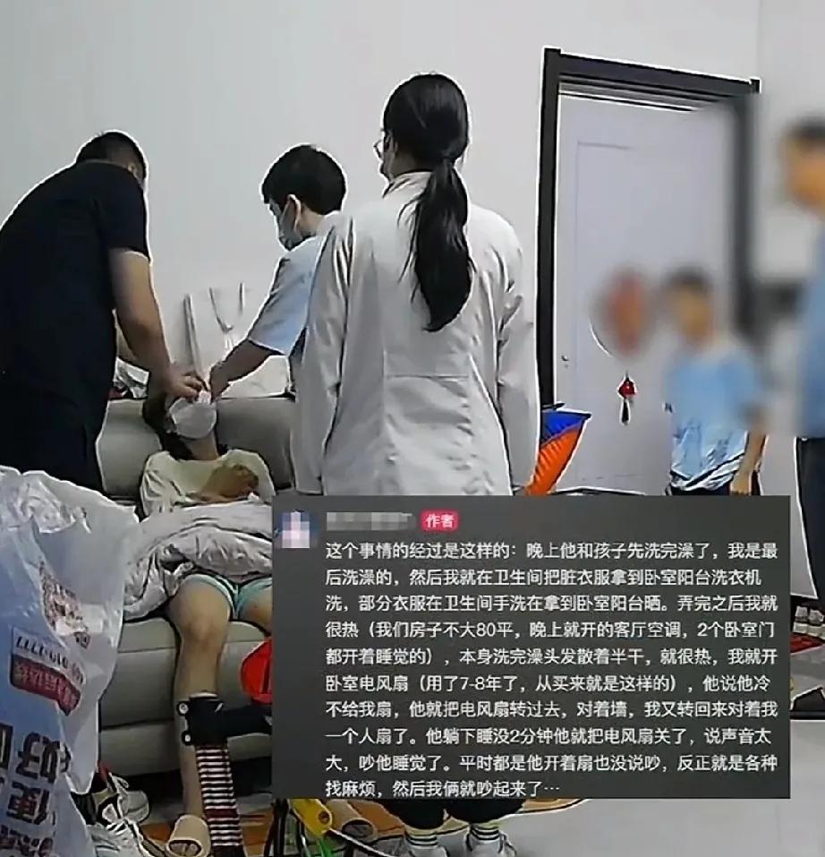 8月27日,安徽滁州。吃完晚饭,陈女士待老公和孩子洗完澡后,自己才去洗。随后又将换下来的衣服清洗晾晒。做完这一切,陈女士的头发还没干,身上又热起来。 客厅有空调,陈女士想使头发快点干,就到卧室吹电风扇。平时陈女士吹头发,老公没意见。今日不知怎么啦,为难起陈女士。他借口冷。把电扇对着墙吹。陈女士又把转过来,对着自己吹。老公生气的倒在床上睡。不到2分钟,借口太吵了,把电风扇关了。两人为此争吵起来。 陈女士在争吵中突感身体不适,呼吸急促,心跳得很快,胸口闷得慌,大脑一片空白。老公见状,也慌了,急忙叫了120。经医生诊断,是呼吸性碱中毒。 这夫妻俩人真逗,老公平时并不在意她吹头发,今天在找碴,很有可能俩人之间存在着矛盾,老公借题发挥。本来吹头发,说一声,没人不让吹的。但女子就是不说,互相斗气,两人把陈芝麻烂谷子翻出来说一遍,结果闹出事了。 过去夫妻之间床头吵架床尾和,不留隔夜仇。避免吵架闹翻的秘诀,就是要学会退一步。从为了家庭幸福出发,就不会吵翻。 #你认为夫妻间避免吵架的秘诀是什么# #女子和老公吵架突发呼吸性碱中毒##夫妻之间# #记录我的2025#