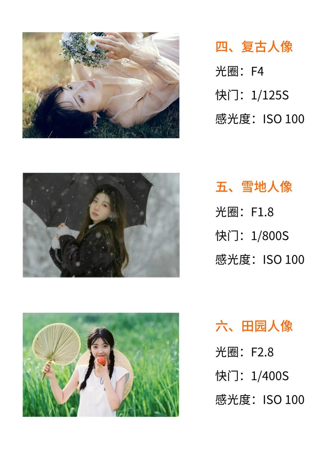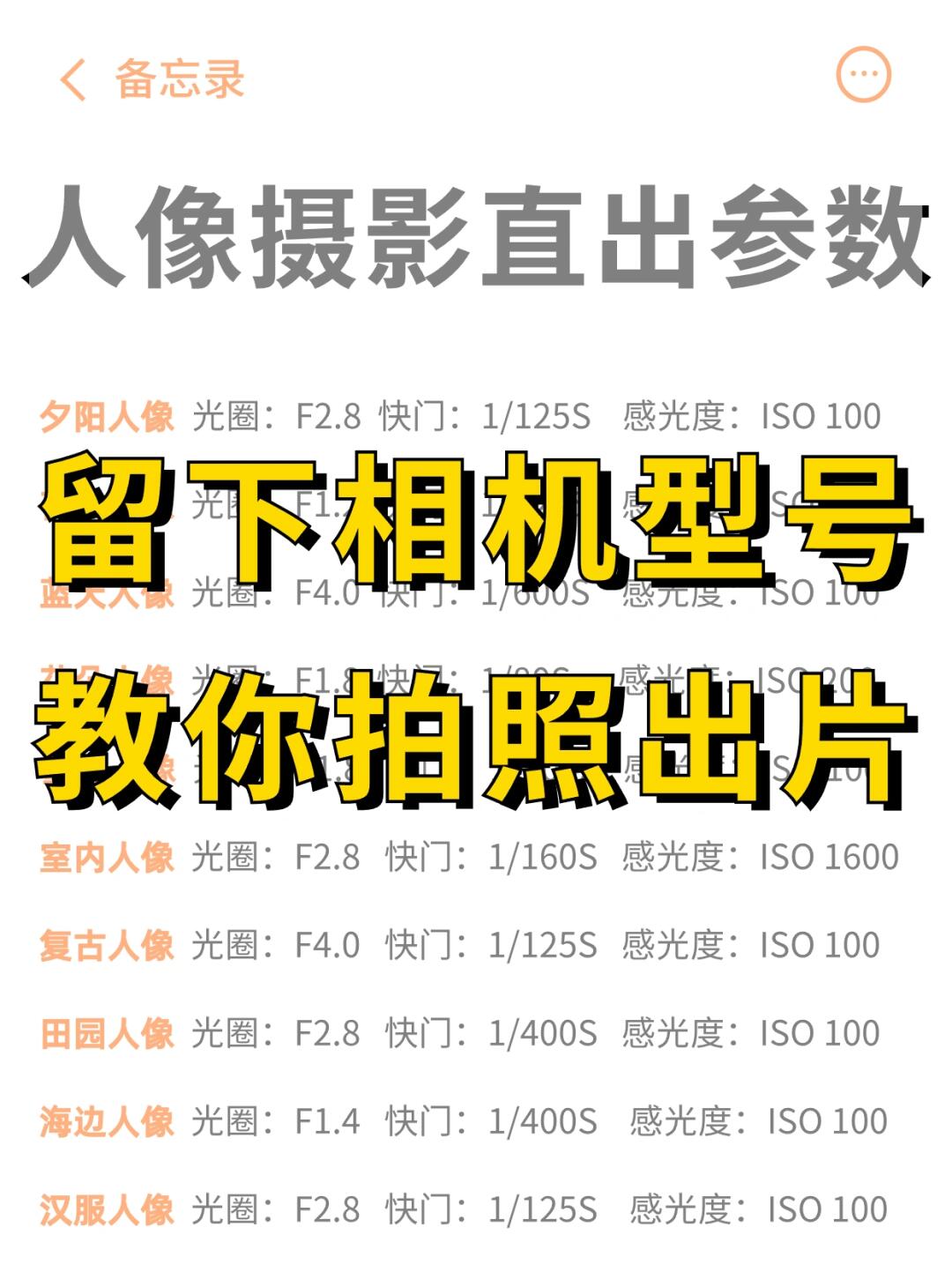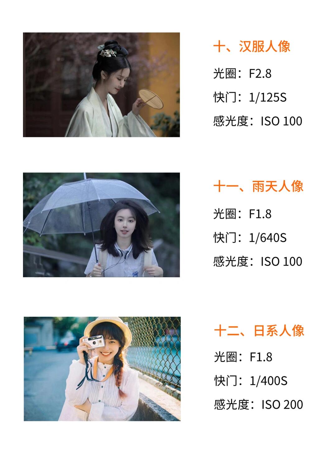 小伙伴们大家好呀,我是摄影师半夏[微笑R] - 最近经常听到有小伙伴说自己拍照不好看,不会调参数,今天半夏就给大家整理了12种热门风格人像参数[赞R]: - 夕阳人像、蓝天人像、夜景人像、复古人像 雪地人像、田园人像、扫街人像、海边人像 室内人像、汉服人像、雨天人像、日系人像 - 具体内容都放在图片里啦,宝子们快去看看叭[赞R] -