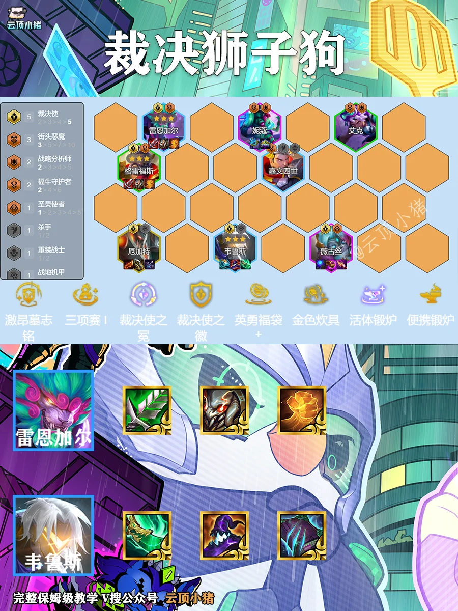 🌟Tips:新赛季装备优先级大洗牌!狂徒>救赎>羊刀,记得开局抢锁子甲/大棒哦~ 图上标注⭐的是必追三星核心,看到天选英雄直接锁阵容!