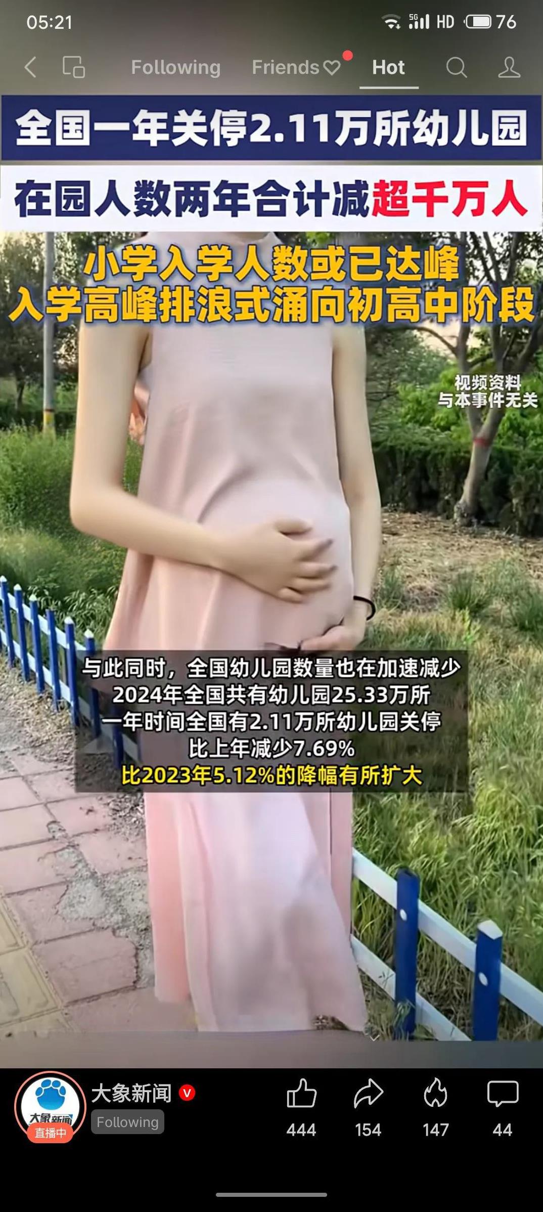 2024年全国关停幼儿园2.11万所,较上年减少7.69%。近两年在园幼儿人数累