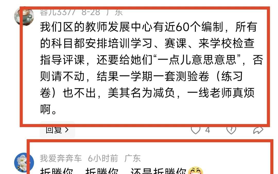 不少地方教育部门成立了“教师是发展中心”,主要是由各科教研员组成,除了有正式的编制以外,可能还会从学校抽调一些老师,或者发展一些兼职教研员,队伍规模是很庞大的。他们主要负责教师的培训、赛课、论文的评选、到学校检查指导课程实施、课题管理等等。不要小看这个部门,他们可以对一所学校的教学做出评价,所以,不少学校的领导把他们奉为座上宾,请他们到学校来指导工作。但一线老师好像对这个部门不太感冒,觉得这帮人太折腾,事情太多,个别教研员水平有限,谈不上指导教学工作。不过这个部门的职位又让一线老师羡慕,毕竟不用亲自教书,不用承担中考高考的压力,到学校去,人家还挺重视。#教育#