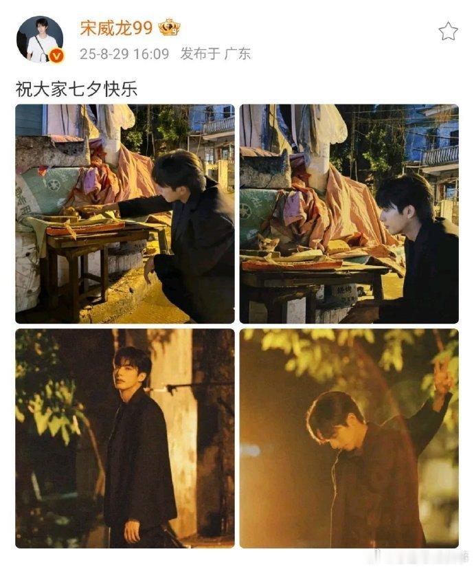 宋威龙祝大家七夕快乐 没有复杂套路,只有真诚心意,四宫格里的每一张都藏着满满的七夕温柔!宋威龙七夕四宫格