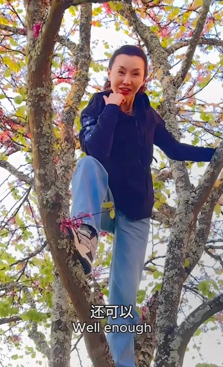 刚想说,这是谁呀!这么大人了还爬树,不爱护树木。原来是张曼玉,爬树玩耍,做回平凡人,享受生活的美好。 你会点赞吗?