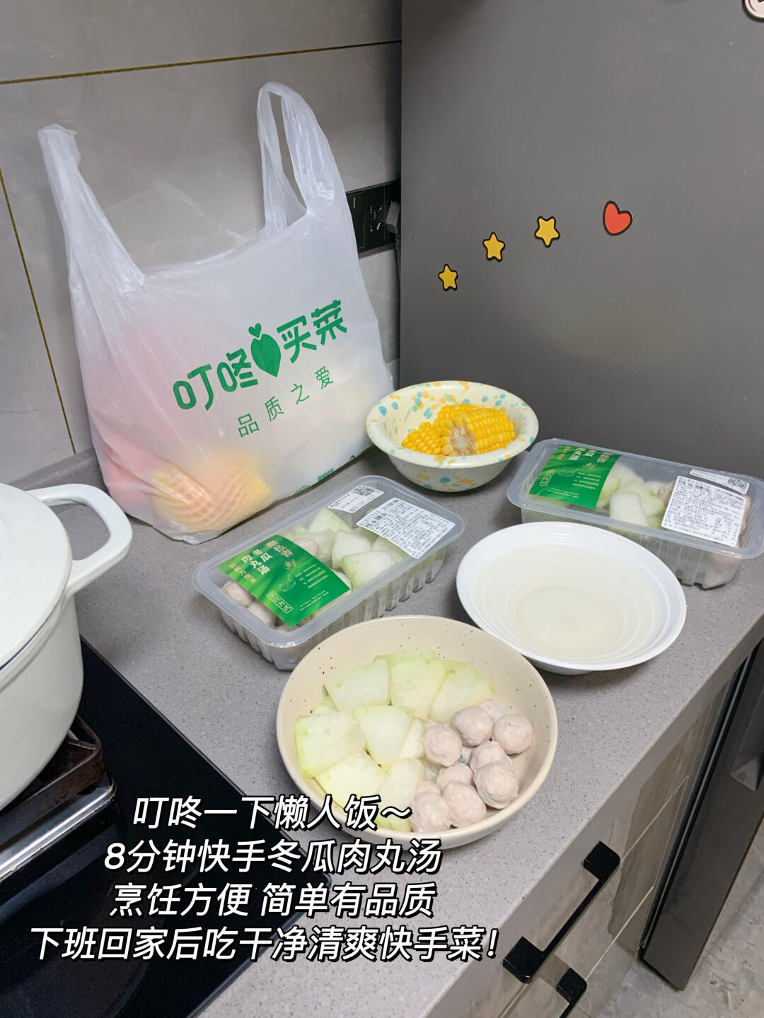 这周的菜我都是在叮咚买菜上买的,叮咚一下方便又新鲜,尊嘟太懂我们打工人了!特别最近新上的这款快手菜蔡长青冬瓜肉丸汤,做汤只需两步(加水、煮8分钟)就能搞定!真的超超超方便~~