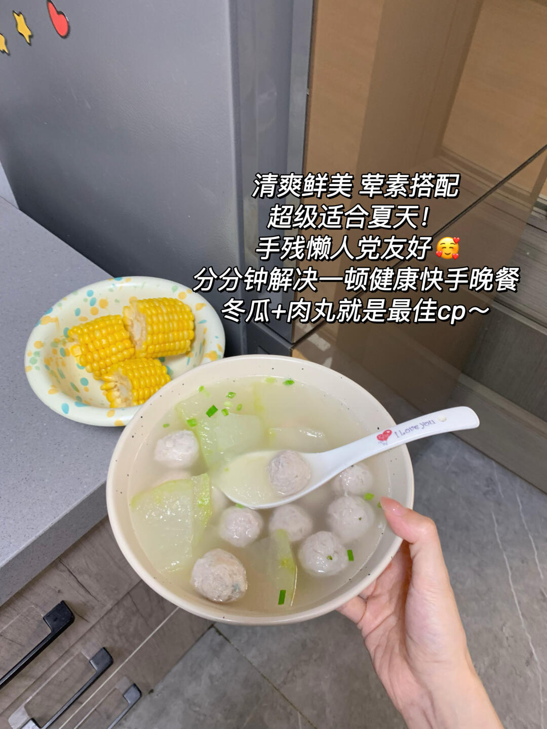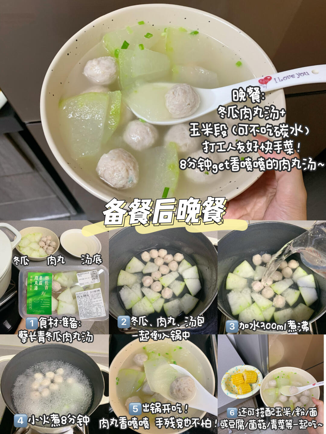 晚餐:冬瓜肉丸汤🥘+甜玉米段🌽(8分钟)