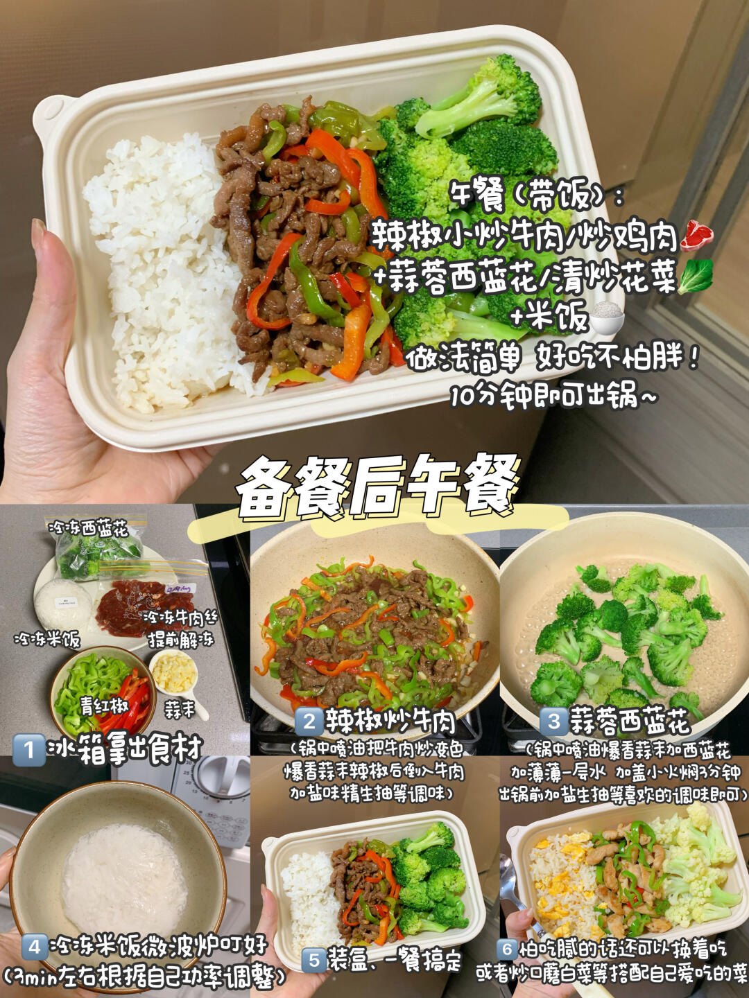 或小炒牛肉🥩+蒜蓉西蓝花🥦+米饭🍚(10分钟)