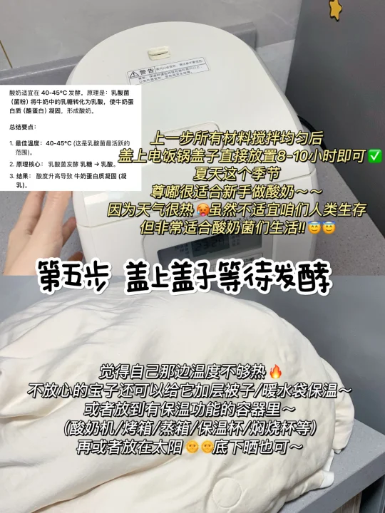 2️⃣40°C左右的环境夏天室温很接近!(看看天气预报就知道了,最近尊嘟很热🔥,温度不够也不怕还可以用被子/热水袋/发热的电器旁/酸奶机/烤箱/蒸箱/保温杯/放在太阳底下等等措施来保温!)