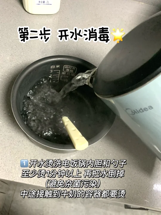 1️⃣中途碰到牛奶的容器都要开水消毒(无杂菌)